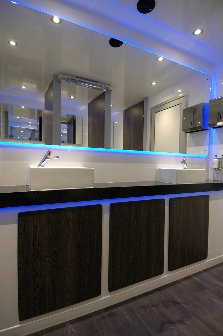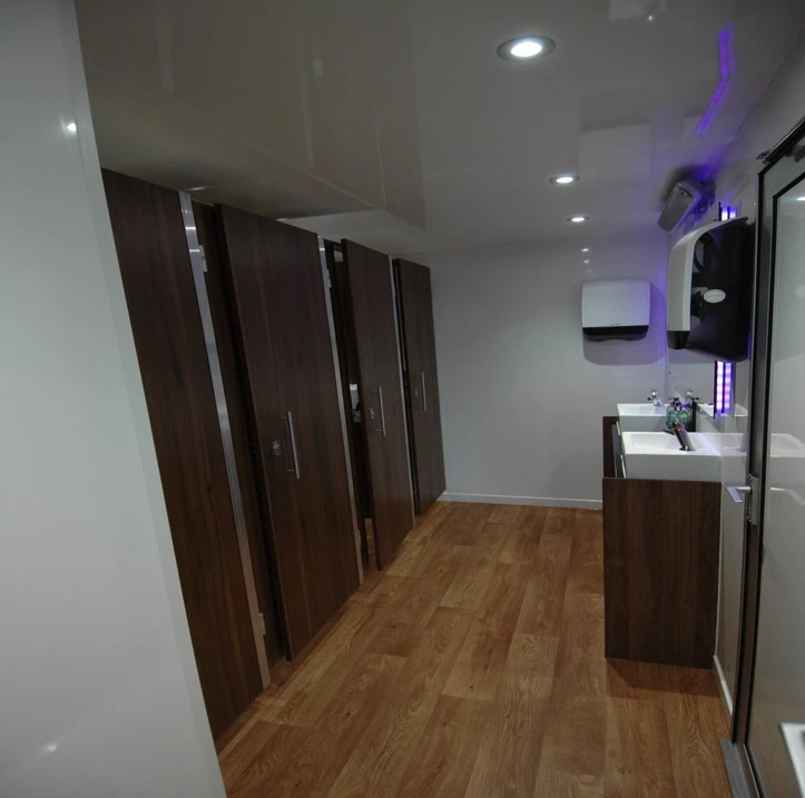 We have both luxury and standard units that are fully self contained (contain their own waste tank/plumbing) or as an alternative option can be plumbed into the mains. The majority of units do require a power supply, 13 or 16amp is suitable.